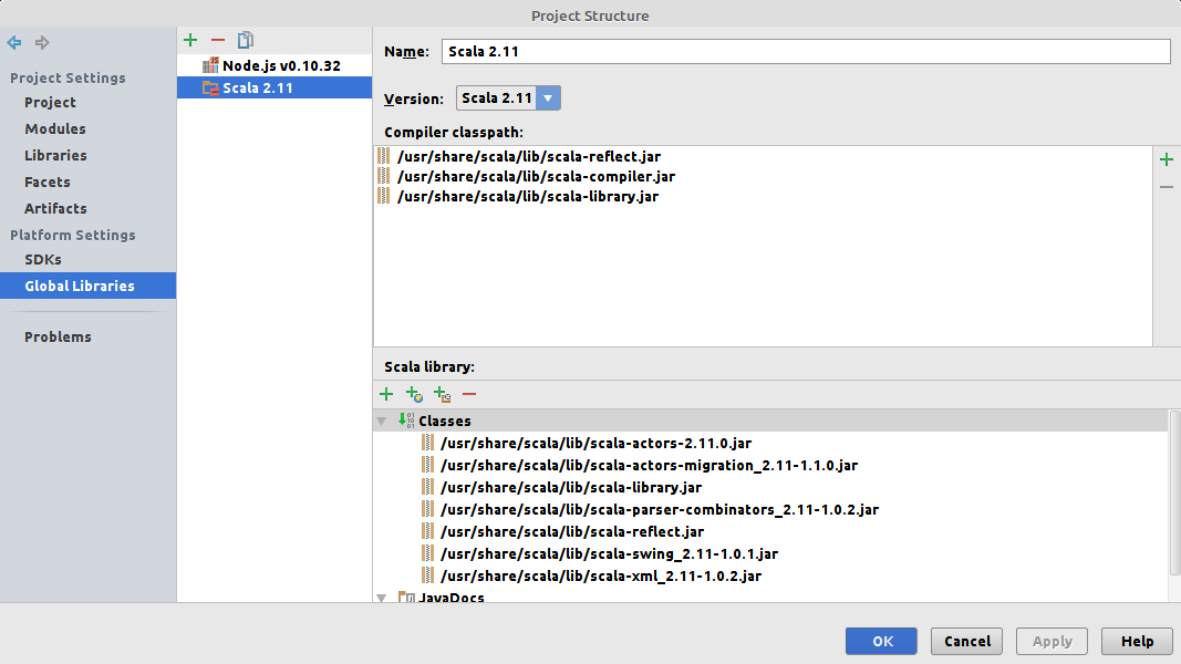 在新的IntelliJ 14.1+中,Scala取代了Scala库,该库除了标准Scala库之外,还有一个类路径到Scala编译器: