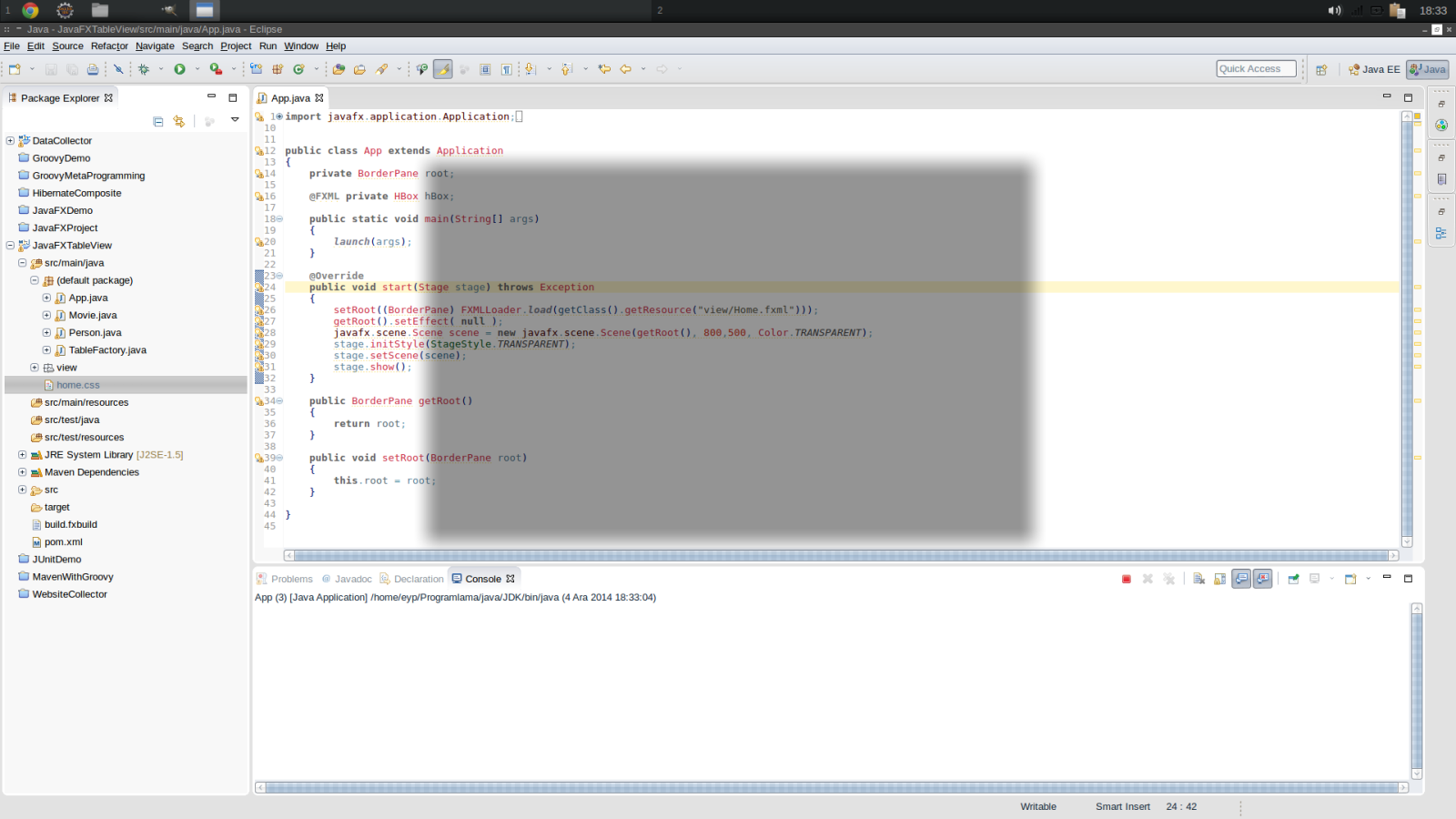 我不能真正检查您的问题,因为我没有您的fxml来测试它,但是我创建了一个快速的测试程序,并在Linux中获得了一个透明窗口。试着把这个也放进去:
