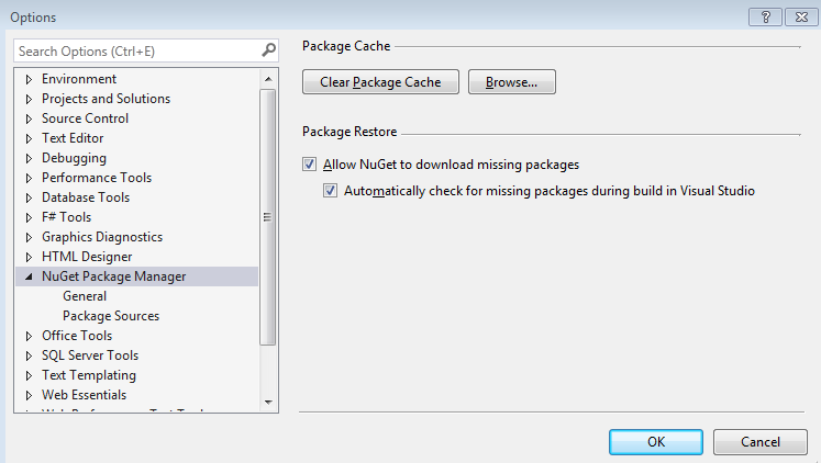 要启用它,您必须进入Options -> NuGet Package Manager并检查在那里找到的两个复选框。