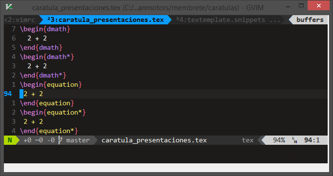 call TexNewMathZone("E","equation",1)然后我查找了:help ft-tex-syntax (通过<C-D>从命令行完成),并在:help tex-math下找到了一个很好的文档。使用该方法,我创建了以下解决方案: