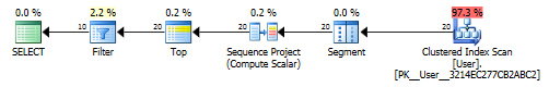 要理解查询计划中正在发生的事情,关键是要知道执行是从左到右完成的,要求每次只执行一行。这就是当返回足够多行时,top运算符可以停止聚集索引扫描的方式。