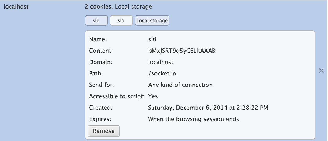 var sessionKey = socket.server.engine.cookie;由于我不再将cookie密钥传递给Socket.IO/Engin.io,所以我需要直接从配置中读取:
