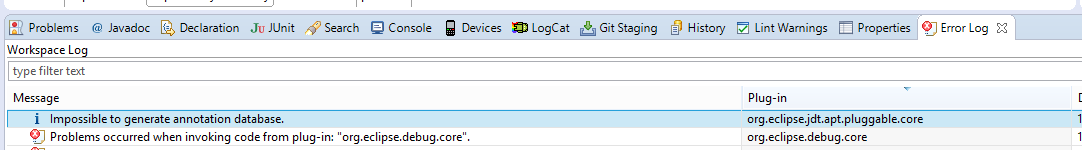 这在我的eclipse日志中产生了一条信息消息,上面写着Impossible to generate annotation database.,这正是RoboGuice的AnnotationDatabaseGenerator引发的通用异常的消息。