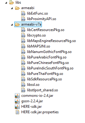 为了明确起见,这两个库在不同的项目中工作,但当我将它们组合在一起时,它在编译我的android应用程序时删除了armeabi-v7a下的这里地图库。