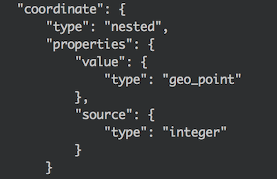 下面是一些细节:我使用河流插件将来自MySQL的数据索引到ES中,并定义映射(嵌套结构,但coordinate.value是geo_point)。