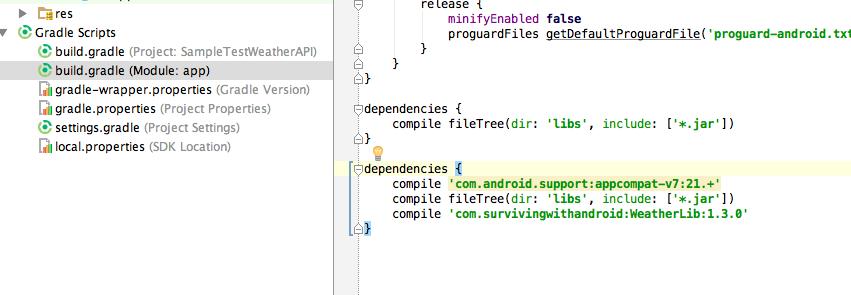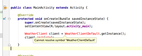 我遵循的教程- http://www.javacodegeeks.com/2014/05/how-to-develop-an-android-weather-app-using-weatherlib.html -获得天气预报使用雅虎气象api。但是,无法解决屏幕截图中的错误。我该怎么解决呢?