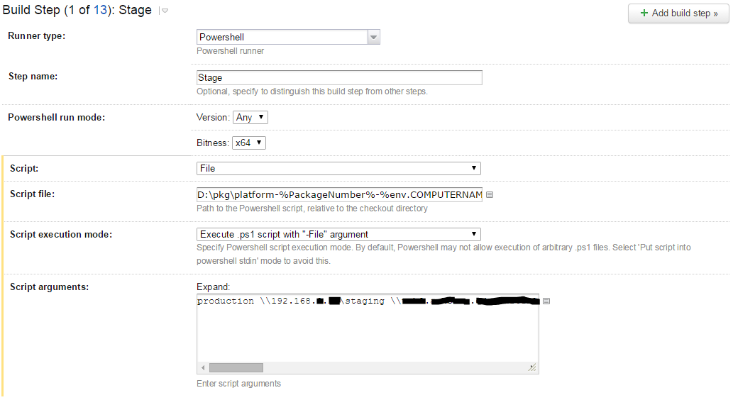 PS C:\Users\user.domain> cd D:\pkg\platform-2b0c7e3f71f9-BUILD01; powershell.exe -noprofile -executionpolicy Bypass -file D:\pkg\platform-2b0c7e3f71f9-BUILD01\stage.ps1 production \\192.168.x.x\staging \\testserver.domain.com\staging