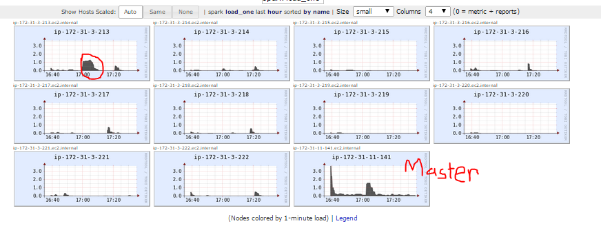 data.count()当我运行这个程序时,我的10个奴隶中只有一个处理数据。我知道这一点,因为当从Spark控制台查看时,只有一个从(213)有任何活动日志。当我在Ganglia中查看该活动时,这个节点(213)是在运行该活动时唯一一个在mem使用中出现尖峰的从节点。