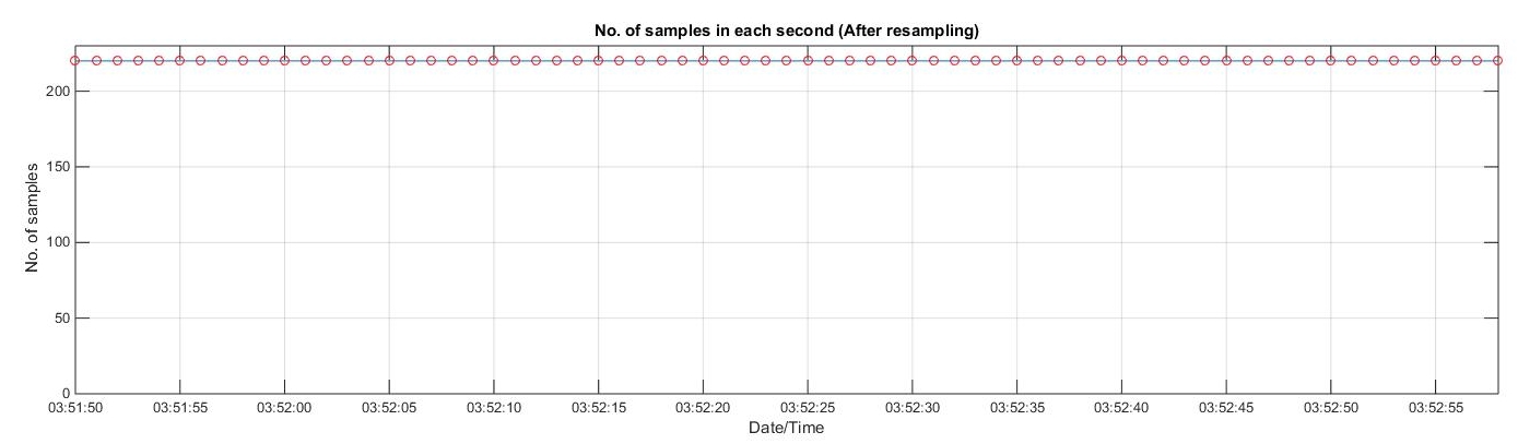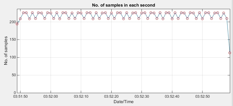 重采样只会从一个固定抽样率转换到另一个固定抽样率。要从非恒定采样率重新采样,您必须知道每个原始样本的时间。如果您知道这些时间为t_orig_sec,则可以通过interp1命令将原始信号插入到新的时间基(t_new_sec)中。您使用的插值类型(linear、spline等)将影响插值过程产生的失真或谐波类型。