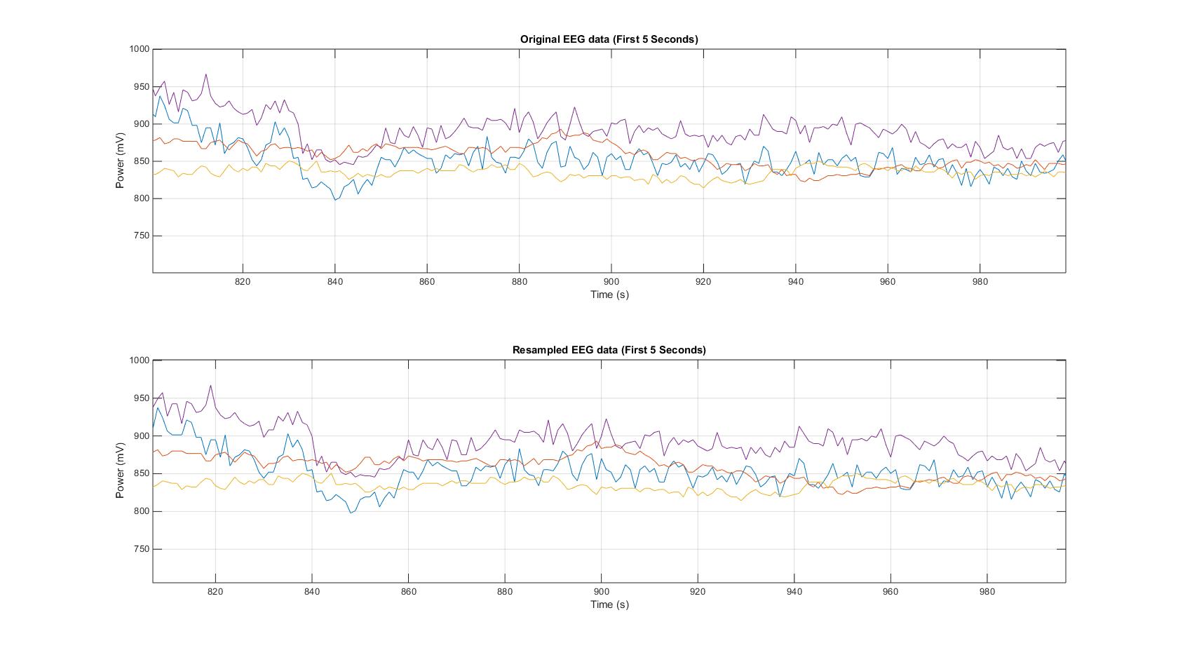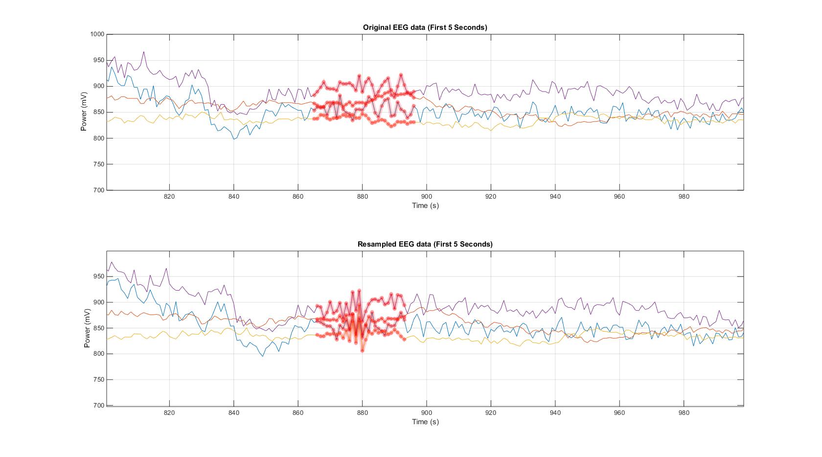 resample(EEG_Data_Trimmed(currSample : endSample, 1:4), p, q, 0);它似乎给了我更好的重放数据,但我仍然不确定原始脑电信号的特征是否被保留为重放版本。