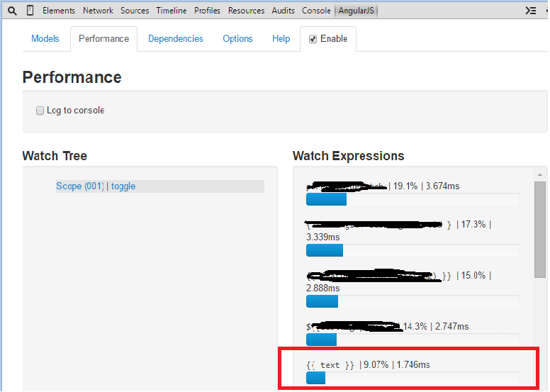 有一些好处,你有一个手表。一个示例是在实际代码中异步设置数据,这意味着绑定变量将在下一个摘要周期中得到更新。但在某些情况下,这是过分的(因此bindonce或其他监视删除库或1.3双向绑定存在)。以下是您可以做的一件事,只需使用一个手表,直到您获得数据,然后删除它,一旦您得到它,并手动设置从指令中的html。