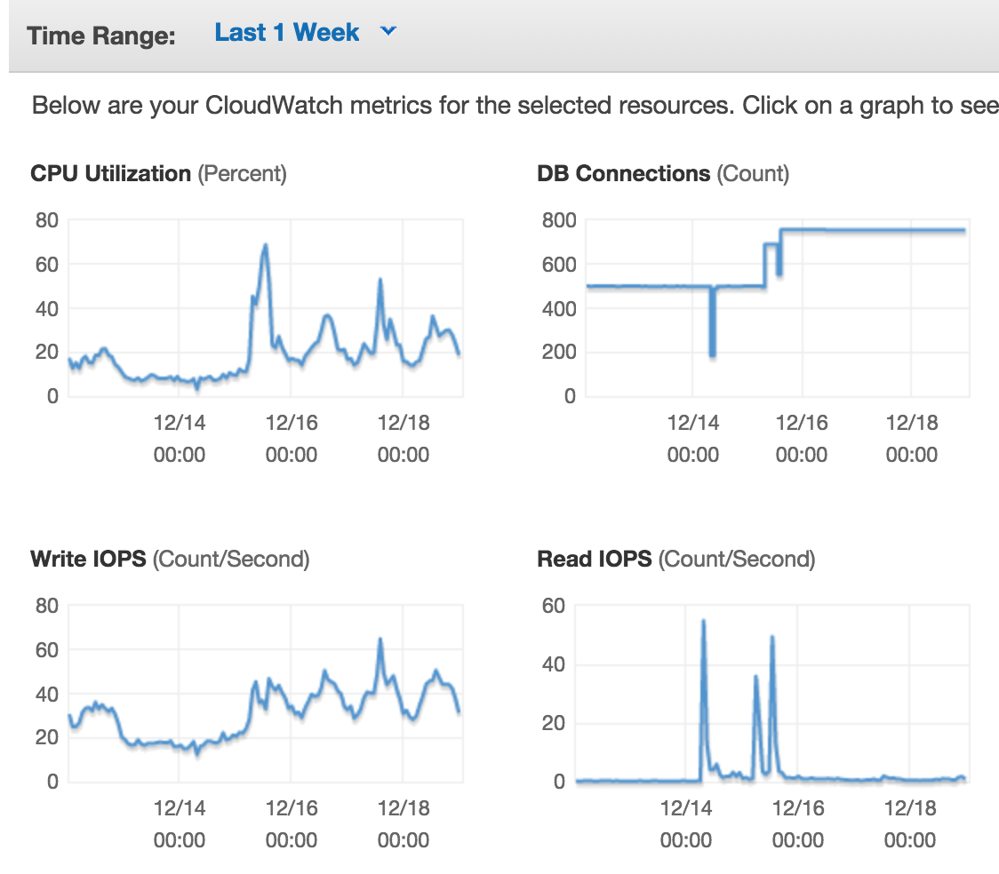 它为100多个同时进行读写查询的客户端提供服务。然而,当我们看云监视时,它显示IOPS在20-60之间。