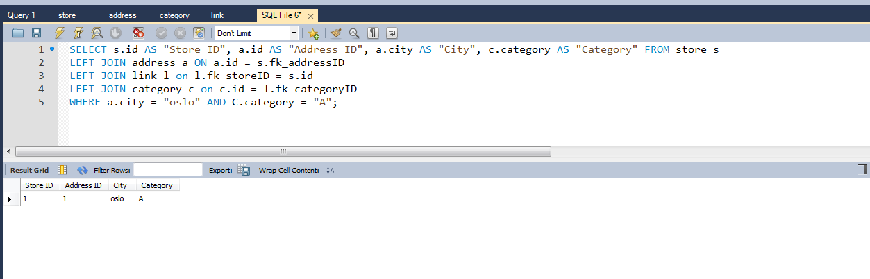 WHERE a.city = "oslo" AND c.category = "A";如果这有帮助的话请告诉我!
