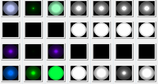 4: ellipse_brightness = (int) (brightness * cos((16 - current_ellipse_count)/15*3.1415926/2) * 2);所有这些方法的输出都类似于以下图像(原始图像,#1-4从上到下,从左到右,亮度为0-255,步长为16):
