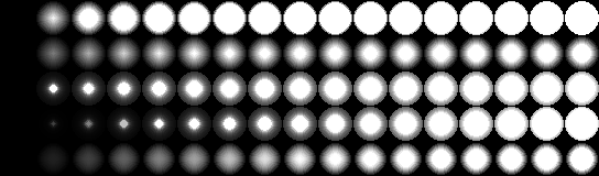 这种方式成功地可视化了低亮度的情况,但在高亮度值下,假设200 (在0-255范围内)仅在椭圆的最后、最大、1像素的边框显示光不是完全明亮的。
