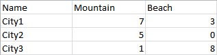 具有城市名称、属性和值的表: