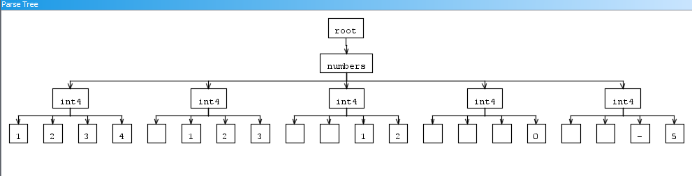 解析树似乎以数字规则结尾,因为数字规则会抛出一个异常(但它不会出现在图表中.)。如果您运行生成的代码,您可以看到它,如果您仔细观察异常,它会说(行信息可能对您不同):