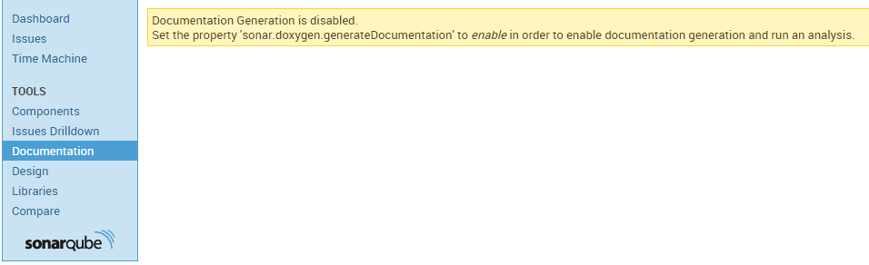 然而,我仍然在Documentation Generation is disabled. web界面中获取这条SonarQube消息: