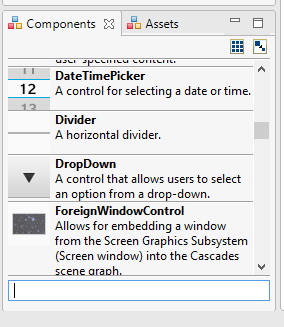 如果需要,可以将其拖放到QML文件中。如果没有,请转到窗口-> Show -> Components。但至少对我来说,手工书写要快得多。