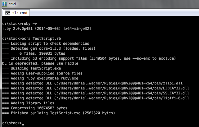 => false当使用Ruby2.0.0p481时,Ocra成功地从这个脚本创建了一个可执行文件: