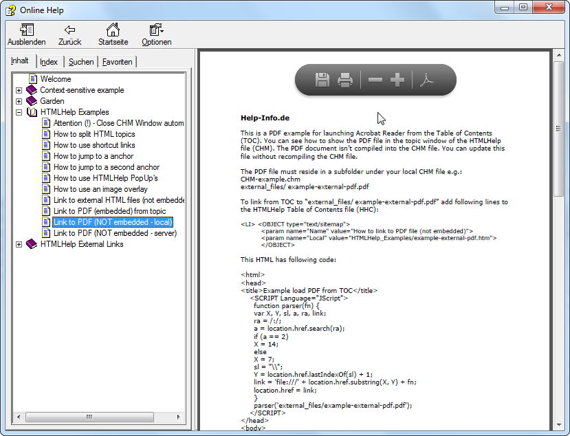 在一个连接的世界中,您可能希望链接到NumPy的网站,如上面所示。当然,导航窗格中没有目录(TOC)。这里只添加了一个主题节点,不可能进行全文搜索。链接的NumPy web内容显示在CHM内容窗格中。你当然可以在这里导航。