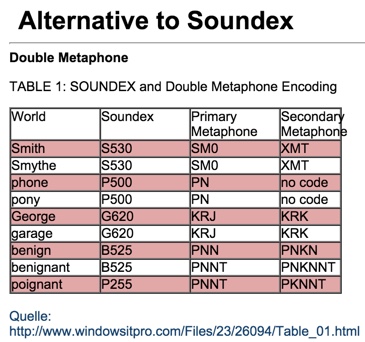 我充分意识到,每种算法都有其自身的优点和缺点,更倾向于不使用SoundEx,但如果我找不到替代方法,它可能仍然有效;就像在这篇文章中提到 Harper会匹配SoundEx下的任何一个不相关的名称列表一样,但在Metaphone中不应该为了更好的结果匹配而工作。