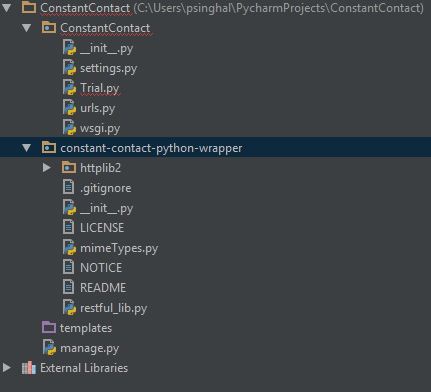 constant-contact-python-wrapper和ConstantContact是与python无关的包。在与__init__.py相同的目录中创建一个manage.py,它应该可以像预期的那样工作。