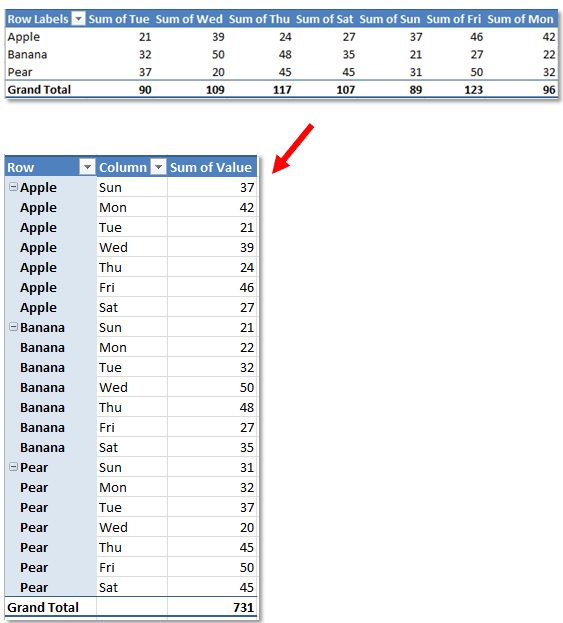 Excel方法的更多细节:http://www.extendoffice.com/documents/excel/2461-excel-reverse-pivot-table.html