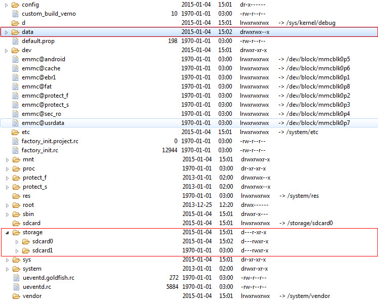我正在查看文件树,并试图找出哪个是:)。我知道默认情况下应用程序会安装到/data/data文件夹中,所以我假设/data/文件夹可以算作内部存储。还有/storage文件夹,其中包含sdcard0和sdcard1。我的手机上只有一张卡- sdcard1。那么,也许sdcard0是电话存储?难道/storage之外的所有东西都被认为是内部存储吗?