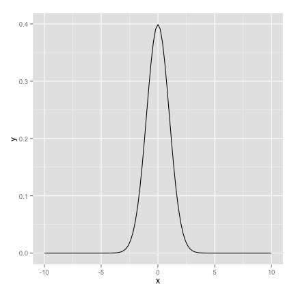 ggplot(data.frame(x=c(-10,10)), aes(x)) + stat_function(fun=dnorm, args=list(0, 1))