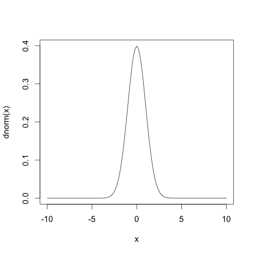 curve(dnorm, xlim=c(-10,10))