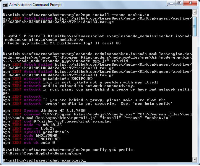 当我试图使用npm安装socket.io时,将得到以下错误。