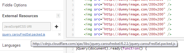 修正jsfidle中的问题:使用外部引用而不带https:http://cdnjs.cloudflare.com/ajax/libs/jquery.caroufredsel/6.2.1/jquery.carouFredSel.packed.js