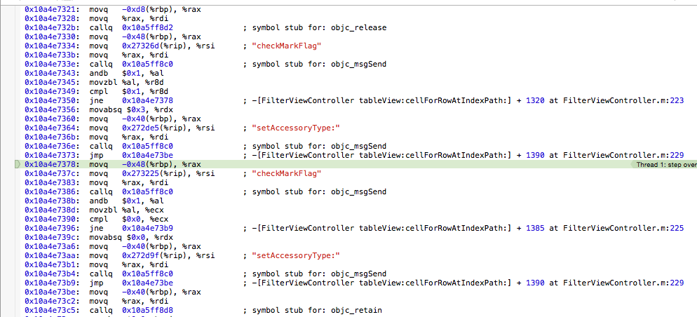 xCode6.1.1断点显示如下,不能逐行调试。如何更改设置。