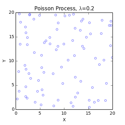 这是我的问题,为什么强度小于1,他还能在这里画点什么?如果我让我的代码lamda = 0.2,就不会有绘图的价值。我想我错过了泊松点过程的一些东西吗?还是程序问题?我想在matlab中模拟这个lambda = 0.2。