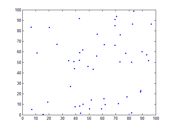 plot(pproc(:, 1).*100, pproc(:, 2).*100, '.');