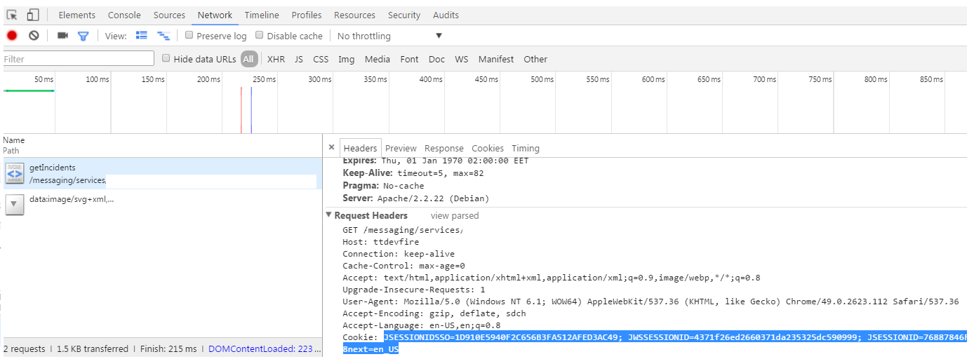 您可以从UI创建应用程序会话,并使用保存会话的cookie。使用浏览器的developer工具从浏览器获取会话cookie详细信息。该图像显示了在浏览器中可以获得cookie的位置:
