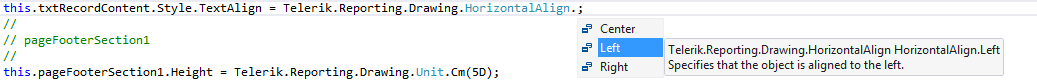 textboxGroup.Style.TextAlign = Telerik.Reporting.Drawing.HorizontalAlign.Right;
