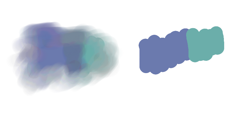 图片中的例子:用两种不同颜色的基本画笔在左边也画,但附加使用污迹工具,的结果应该像左边的。