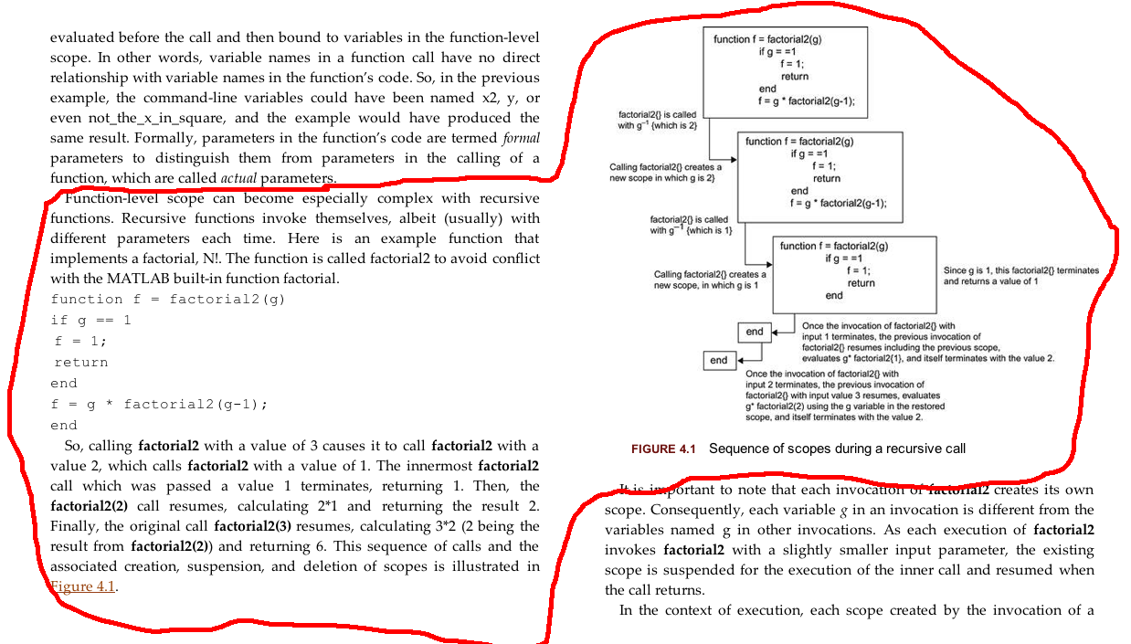 基本上,我是在要求一个人把作者解释(用红色圈起来)这个函数是如何工作的,就好像他们是在向一个5岁的孩子解释这个概念和过程一样。我对编程很陌生。我以为我读了另一本书就明白了这是怎么回事,但现在这位作者的解释只会引起混乱。非常感谢任何能帮忙的人!