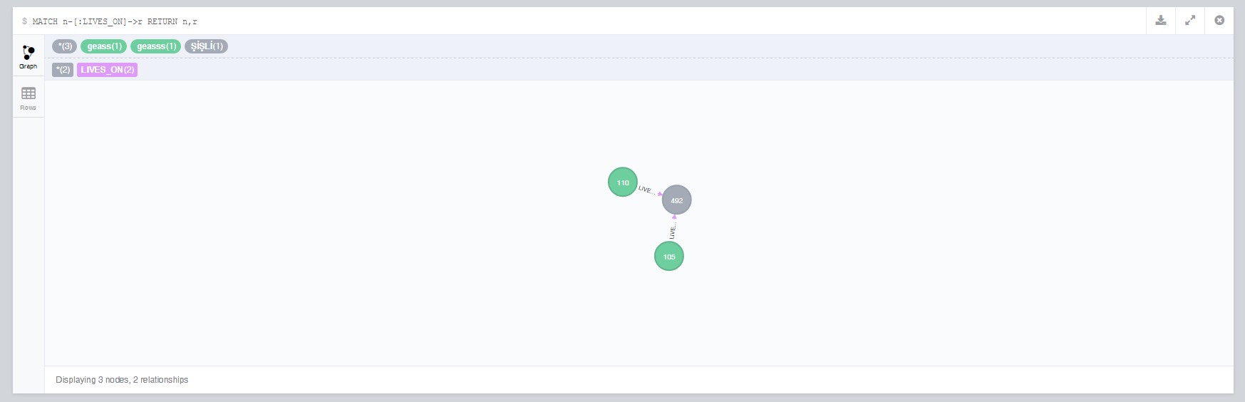 如你所见,有两个人(他们的身份证: 105,110)和一个地方(身份证: 492)