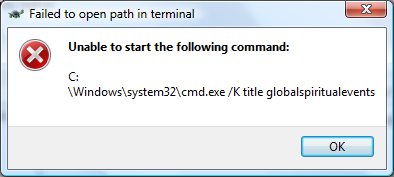 我确实导航到了C:\Windows\System32 32,并发现cmd.exe确实存在于这个目录中,因此/K title globalspiritualevents部件似乎失败了。