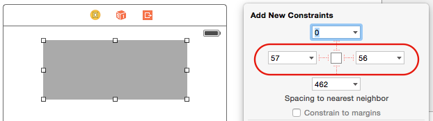 Xcode默认设置新的约束以包括页边距。您可以在'Pin‘菜单上找到这个选项--默认情况下有一个复选框“约束到边距”: