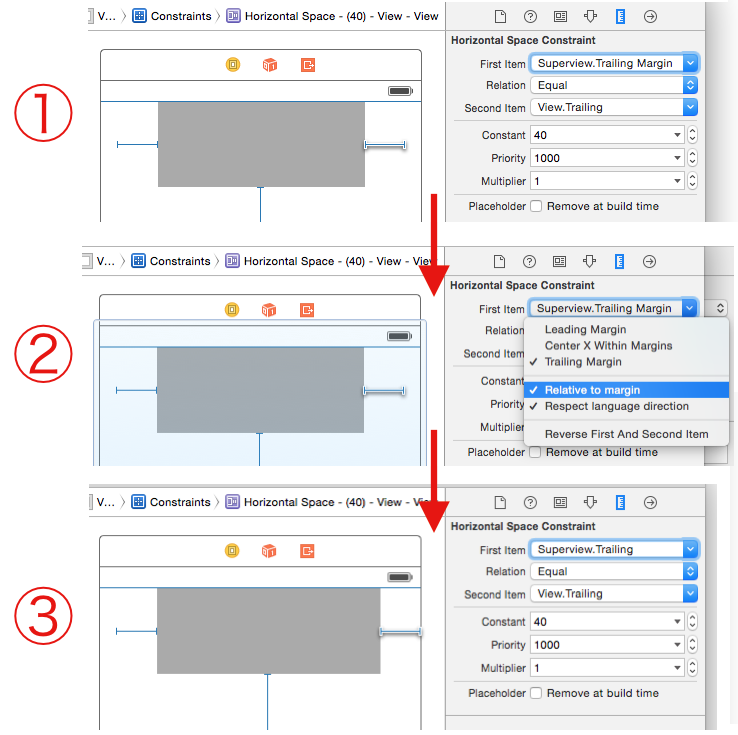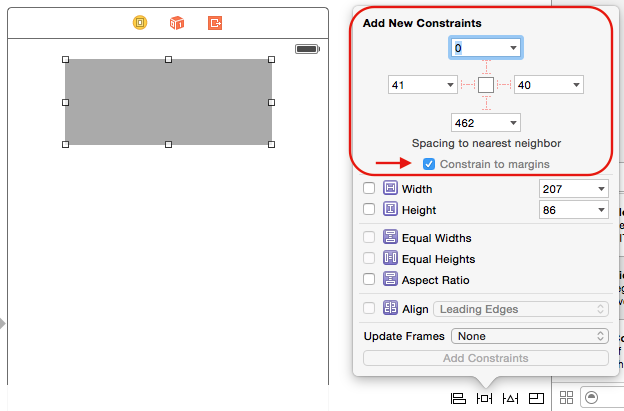 在设置有关页边距的自动布局约束时,要记住两件事: