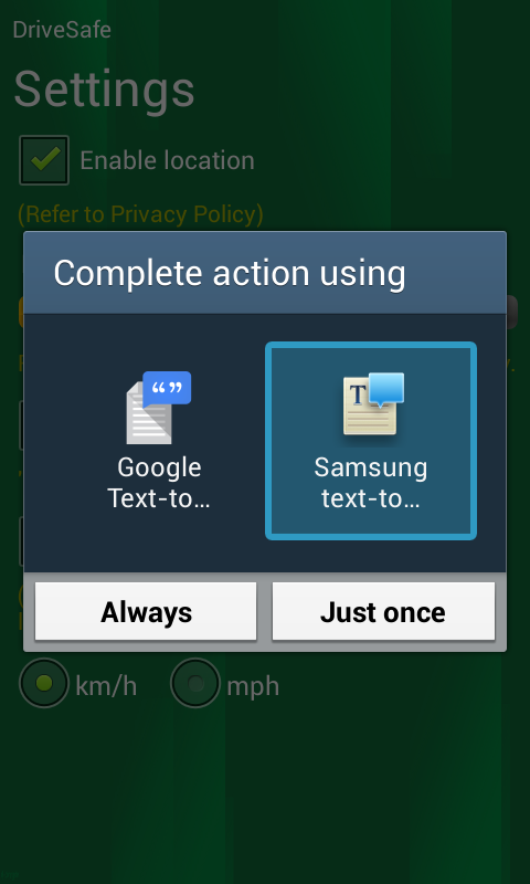 startActivityForResult(checkTTSIntent, MY_DATA_CHECK_CODE);但这段代码是我手机上的一个选择对话框,用于选择b/w谷歌的TextToSpeech引擎或三星TextToSpeech引擎。现在我要移除这个