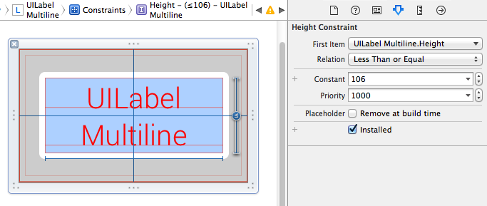 只需在您的NSLayoutConstraint上添加一个具有以下值的UILabel: