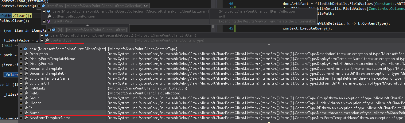 }但是,如果可能的话,我将在单个调用中获取这些信息,而不必迭代集合并启动对ClientContext.的多次调用。