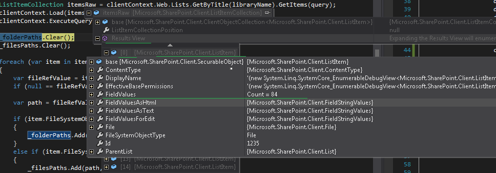 文件细节似乎是以一种懒散的方式加载的。只有细节层次结构的第一个级别。但我不知道FieldValues集合是如何填充数据的。