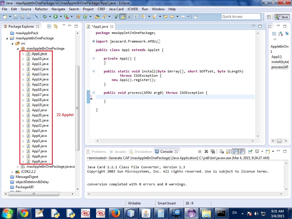 我创建了一个包含22个相同的applet的包。(applet在程序上是相等的,在AID中是不同的)。