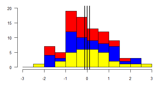 histstack(together, seq(-3, 3, 0.5), col=c(7, 4, 2), main='',